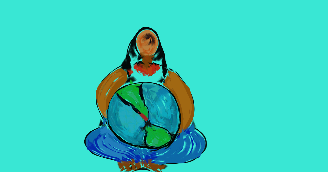 For the World/El Mundo, the image of Atlas, is replaced by that of a woman of colour whose overlooked labour fuels a variety of socio-economic systems, such as slavery, debt peonage, share-cropping, informal markets and household services and maquiladora manufacturing around the world. For the image of the brave one or El Valiente, I show an elderly disabled Indigenous man, celebrating the courage it takes to live on a pittance with mobility and other problems.