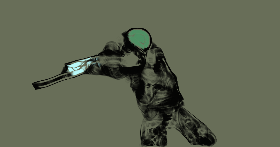 One, two and three, the soldier heads to the fort.
