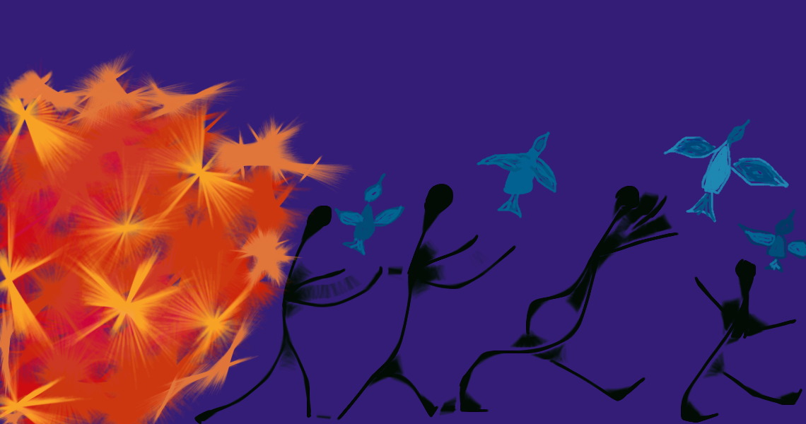 The drawings in this piece are from a series called “Blood in the Fire”.
