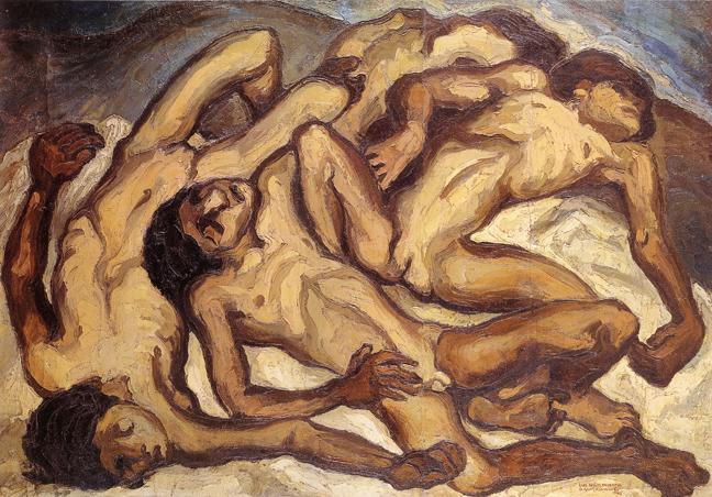 I’ve been inspired lately by the paintings of Oswaldo Guayasamin. Although he is well-respected in Latin America, I rarely see the type of eulogizing that over him that is so common with Frida Kahlo, whose identity as a mature and political artist has been submerged in a depoliticized portraitist school of thought that is infinitely less disturbing of the existing order. Like Kahlo, Guayasamin, born in 1919 into a feudal and neo-colonial state like Ecuador, took sides in a visceral and visible struggle against poverty, injustice and the invisibilization of suffering that was part of so much art contemporary to the time.